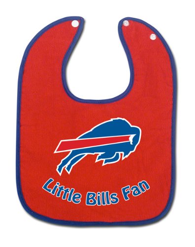 Buffalo Bills Baby Bib. Licensed NFL Baby Bib with Team Color Trim. 86% Cotton, 14% Polyester. Adjustable Snap. Washable, Tumble Dry. Read more...