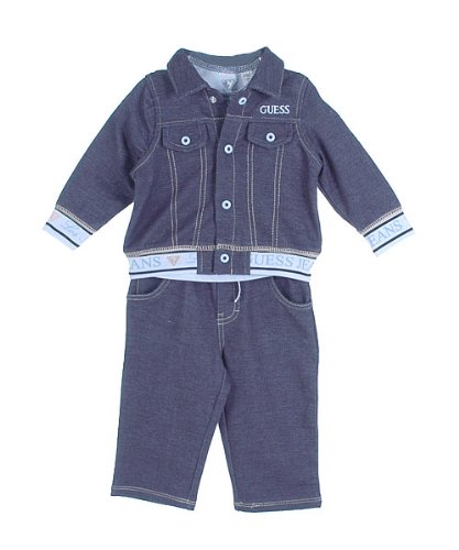 Give your little guy exceptional comfort and designer style with this 3-piece outfit from Guess. All items are made of soft fabrics for his ultimate comfort. Includes: Jacket: soft denim-look jersey, logo snaps, chest flaps, logo printed trim. (74% Cotton, 14% Rayon, 9% Polyester, 3% Spandex) T-Shirt: jersey cotton, lap collar, logo patch and embroidery. (100% Cotton) Pants: soft denim-look jersey, 5-pocket design, logo print elastic waistband. (74% Cotton, 14% Rayon, 9% Polyester, 3% Spandex) Machine Wash Warm Made in China Read more...