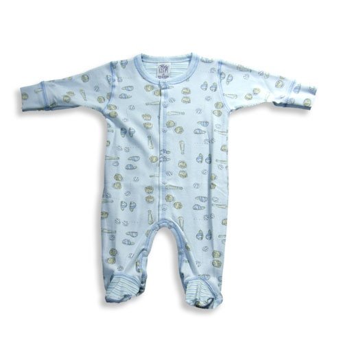 Baby Steps - Newborn Boys Long Sleeve Footed Baseball Coverall, Light Blue, All Over Star Print, Contrast Stitching, Snap Up Front, Gripper Snaps From Foot To Foot, 100% Cotton, #18398 Read more...