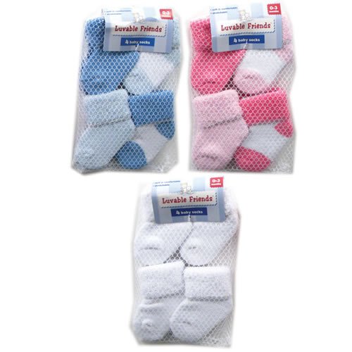 Luvable Friends 4-Pack Newborn Socks in Washbag are a cute and soft addition to your baby's budding wardrobe. Available in 3 color sets and fits up to 3 months. Read more...