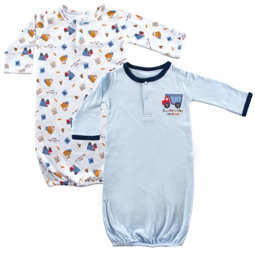 Premium brand Hudson Baby infant clothes are an attractive and stylish way to dress your precious little one. Made of the highest quality 100% combed cotton these garments are soft to the touch on your baby's skin. These infant gowns are generously sized and elasticized across the bottom for a comfortable fit. Also, all gowns have long sleeves with in-sleeve scratch mittens. The gowns come in an adorable construction themed design from the Construction Zone Collection. Featuring a truck applique and stylish matching print. Fits infants up to 6 months. Read more...